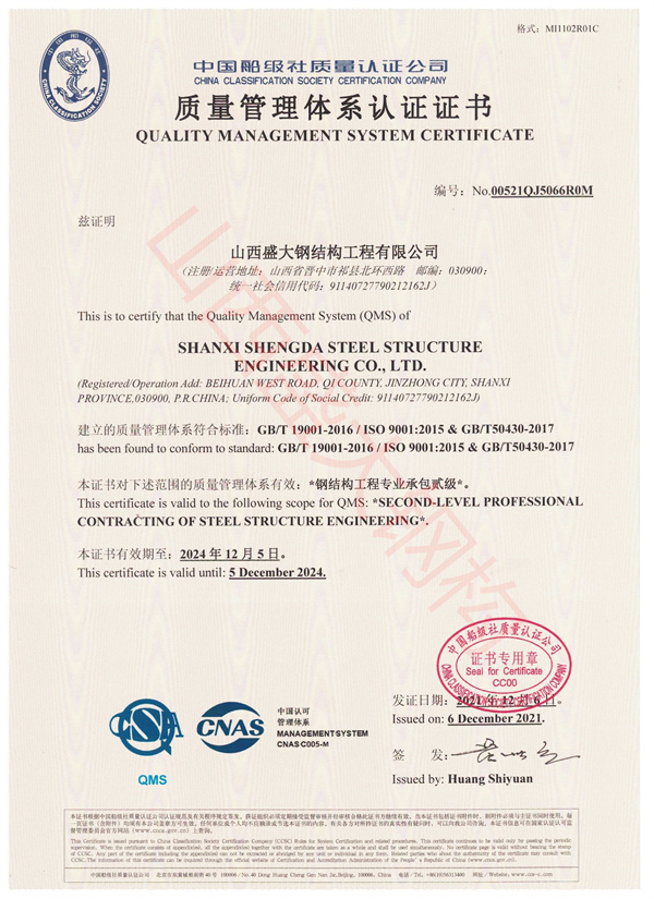 山西盛大鋼結構工程有限公司 山西盛大鋼結構工程有限公司成立于1996年,坐落于國家歷史文化名城——山西祁縣。擁有兩大智能化鋼結構生產基地,占地110畝,建筑面積3萬余平方米,具備鋼結構專業承包貳級、建筑工程施工總承包貳級資質,是一家集設計、制造、施工于一體的大型鋼結構工程企業。 盛大鋼構是中國鋼結構協會會員單位,山西鋼結構協會副會長單位,山西建筑企業商會理事單位,山西省土木建筑學會會員單位,擁有國家知識產權局注冊商標。公司已通過ISO9001質量管理體系認證,體系覆蓋鋼結構加工與施工等核心… more +